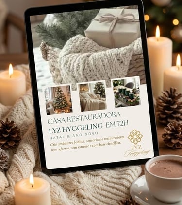 O e-book CASA RESTAURADORA® 72H - O Guia Definitivo para Transformar seu Lar no Natal e Ano Novo é um guia prático e sensorial para transformar sua casa: